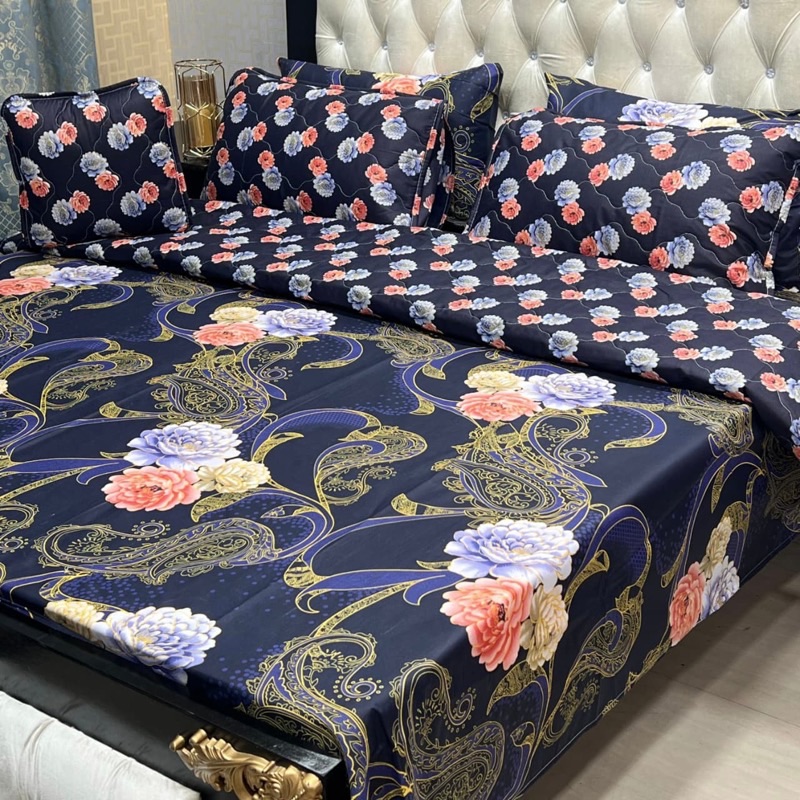 Made with cotton mix fabric and filled with 100% fine quality stuffing, this comforter set is ideal for winter season, mild cold weather, and air-conditioned rooms. The soft texture, stylish printed design, and complete 7-piece combination make it a perfect choice for daily use as well as special occasions.